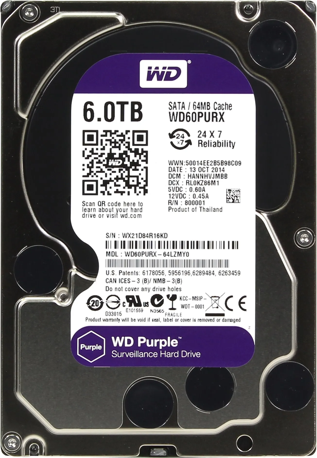 Внешний жесткий диск Westem Digital 6Tb WD Purple WD60PURX SATA