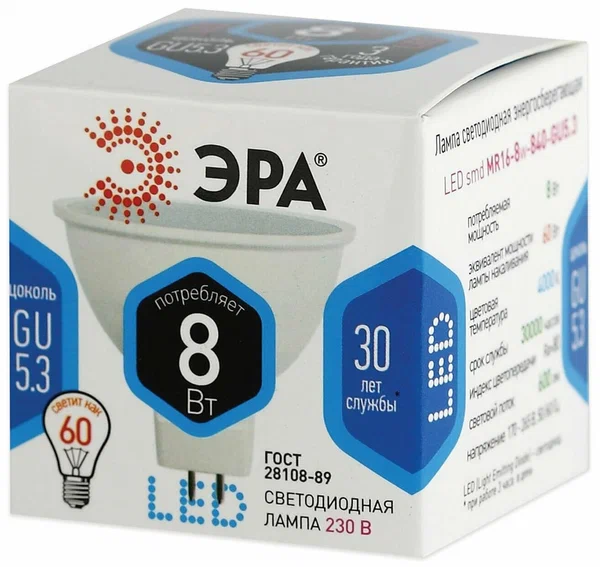 Светодиодная лампа Эра LE MR16-8W-840-GU5.3
