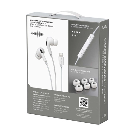 Наушники Breaking H/F Lightning LT18 (25418) с микрафоном белый