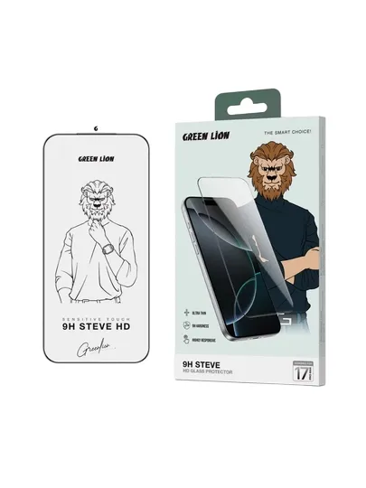 Защитное стекло для Apple iPhone 17/16 Pro Green Lion 9H Steve Anty-Spy черный