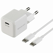 СЗУ Breaking P-08 USB-C+кабель Type-C/Type-C 25W белый