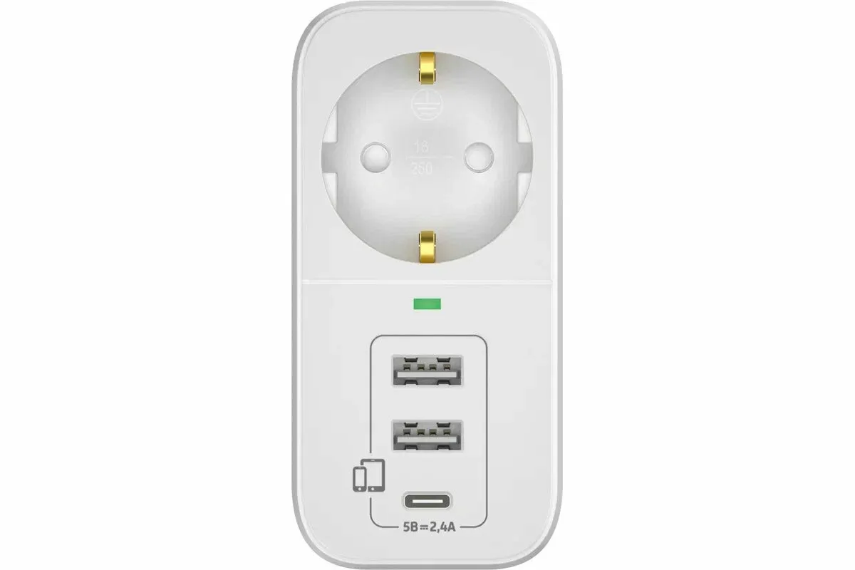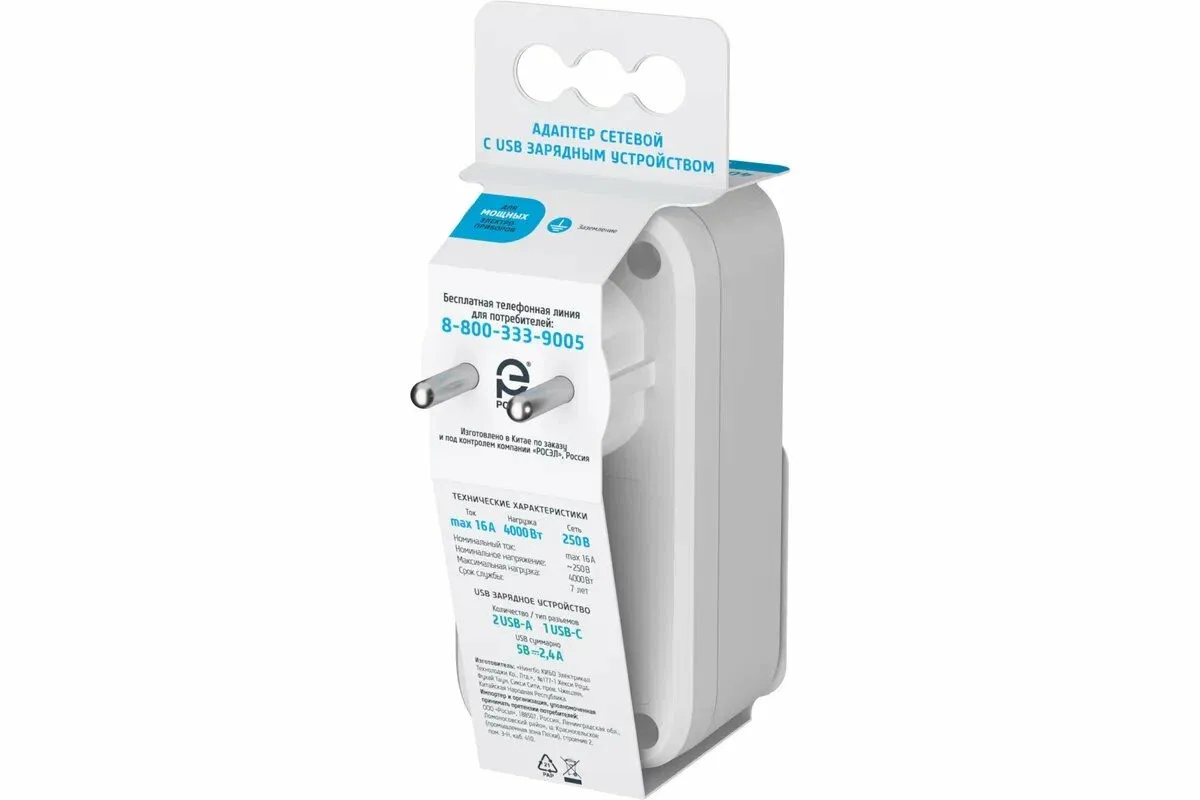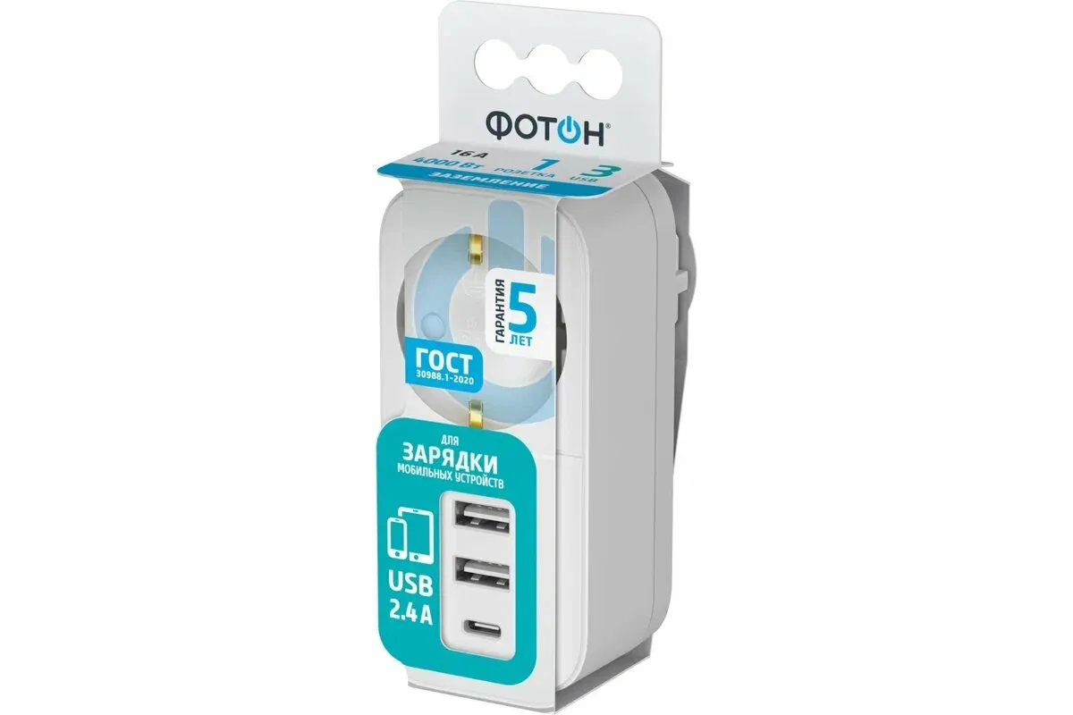 Электрический переходник Фотон 16-1E-USB/A2С1 16А белый