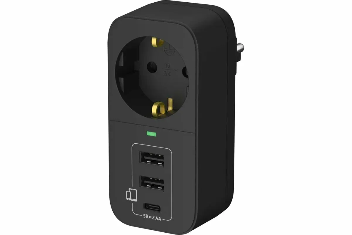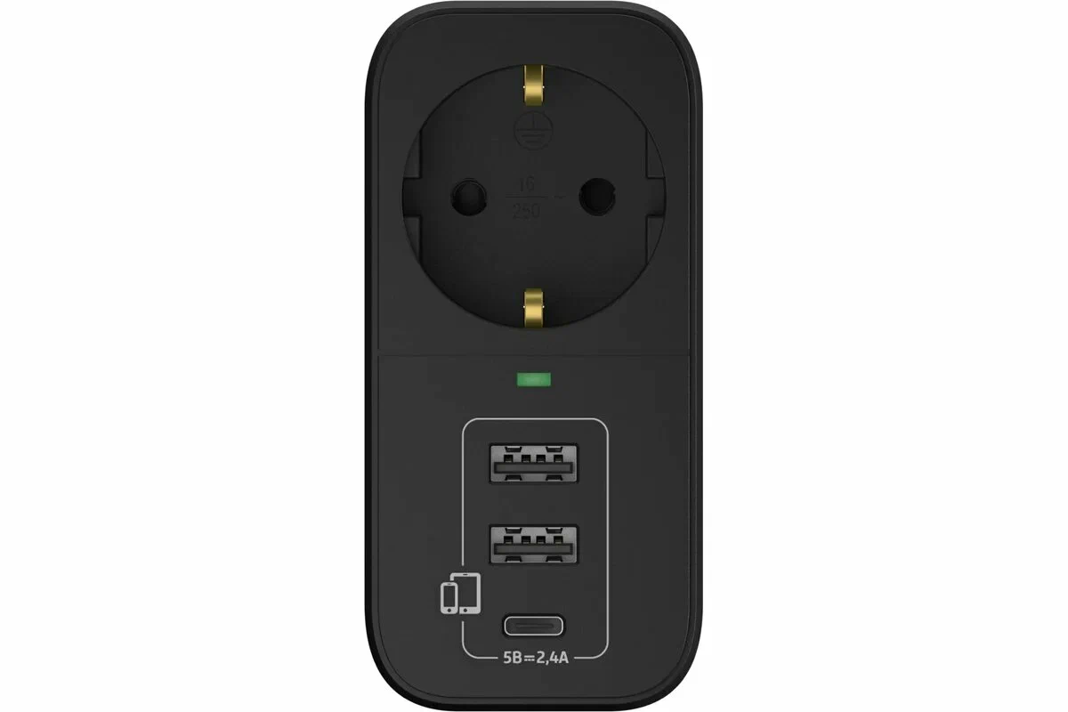 Электрический переходник Фотон 16-1E-USB/A2С1 16А черный