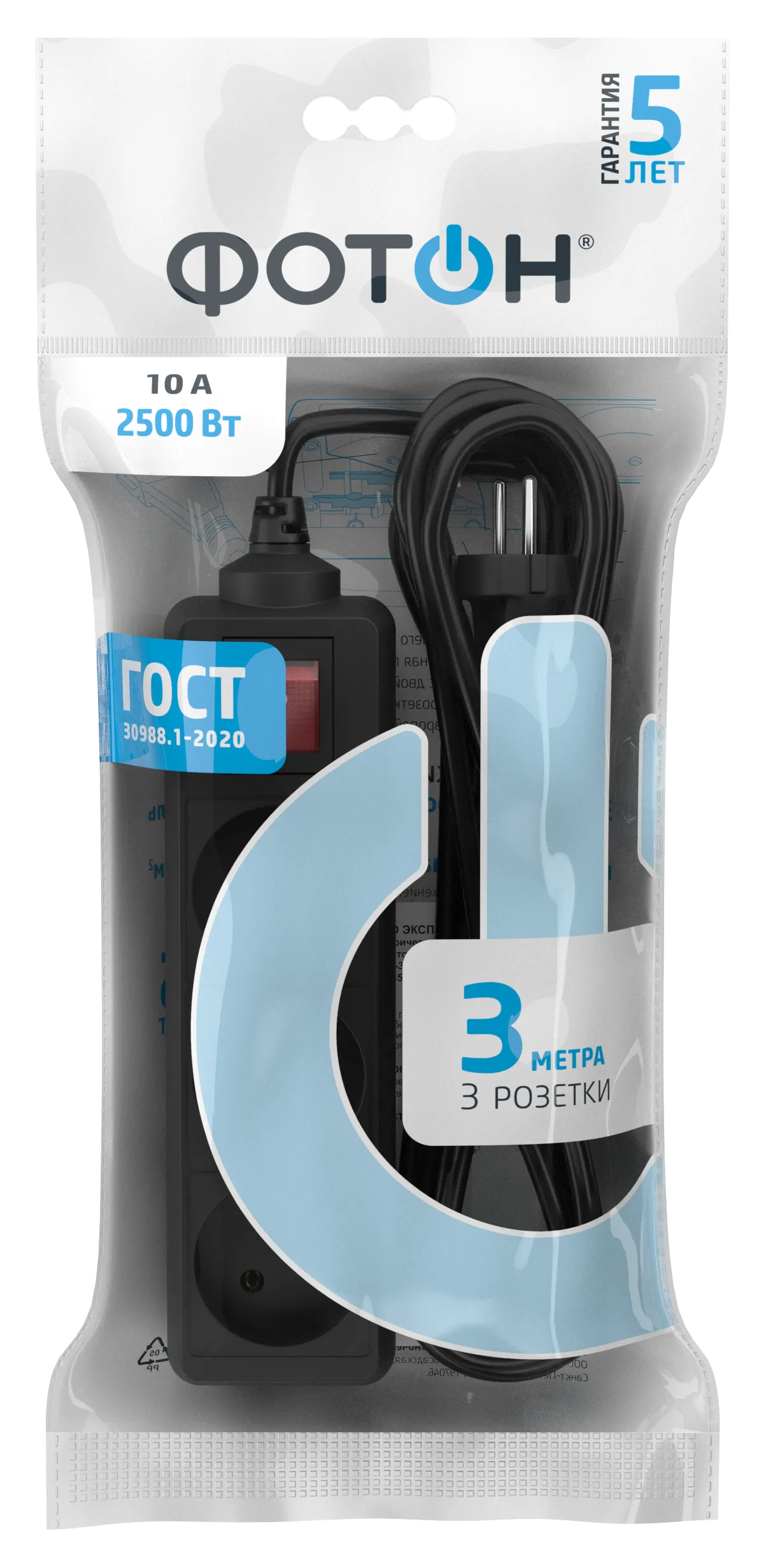 Сетевой удлинитель Фотон 10-33S 3м-3гн черный