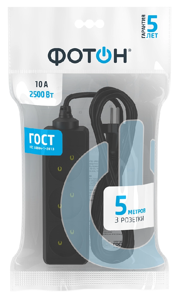 Сетевой удлинитель Фотон 10-53 5m-10A-3гн. черный