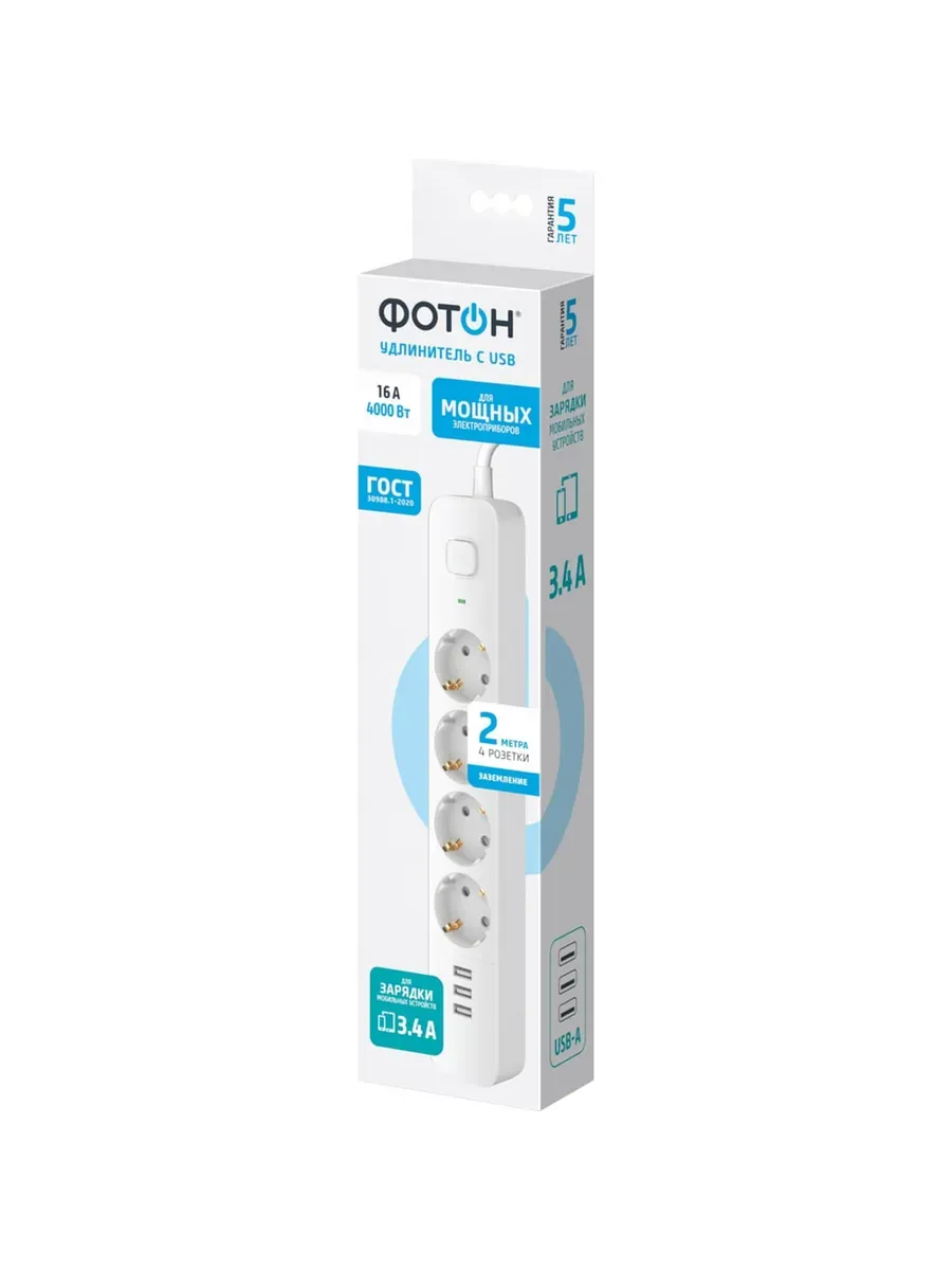 Сетевой удлинитель Фотон 16-24ES-USB/A3 2м белый
