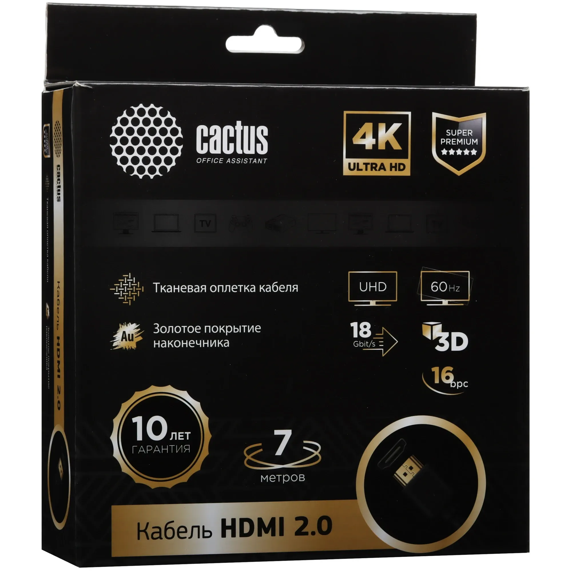 Кабель аудио-видео Cactus HDMI (m)/HDMI (m) 7м. черный