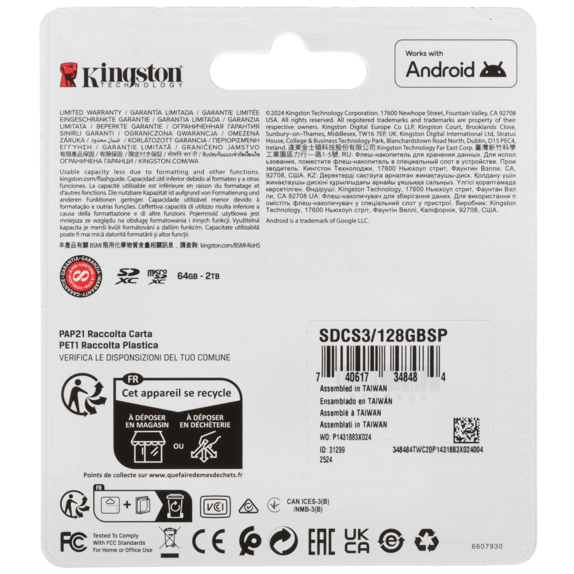 Карта памяти Kingston SDCS3/128GB