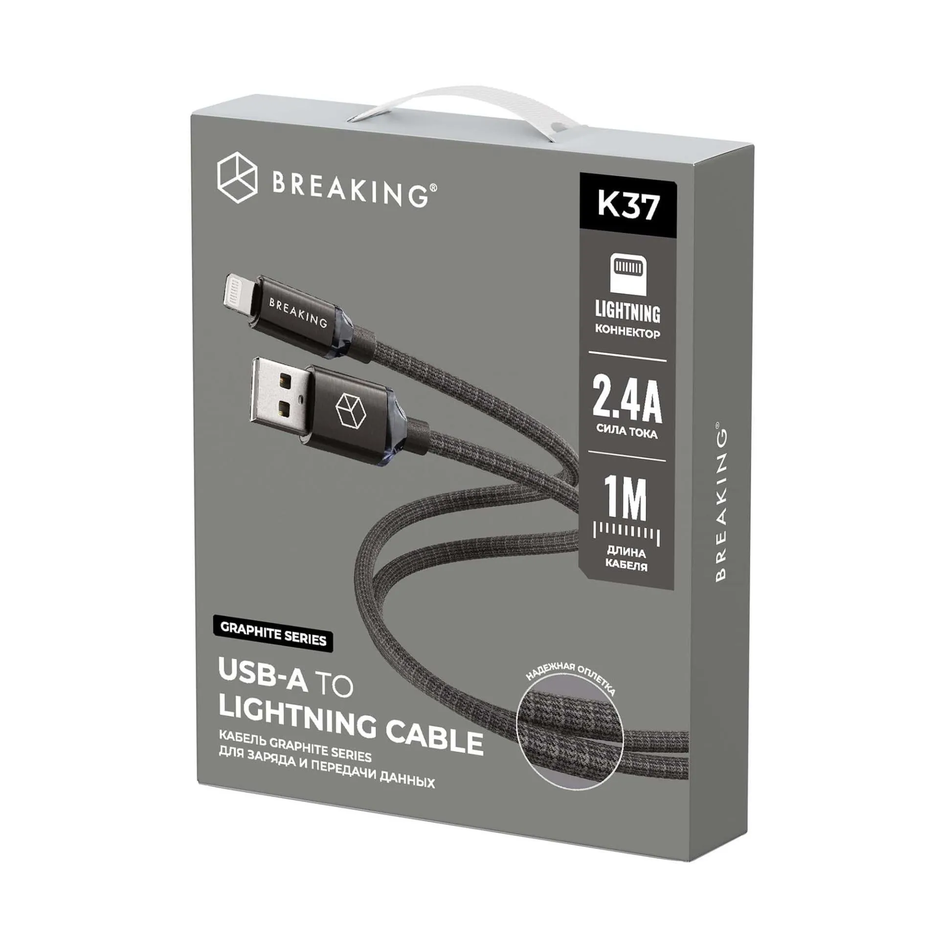 Кабель Breaking USB-A/Lightning K37 (21741) 1м черный