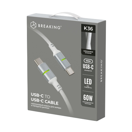 Кабель Breaking USB-C/USB-C Cable K36 (21739) 1м белый